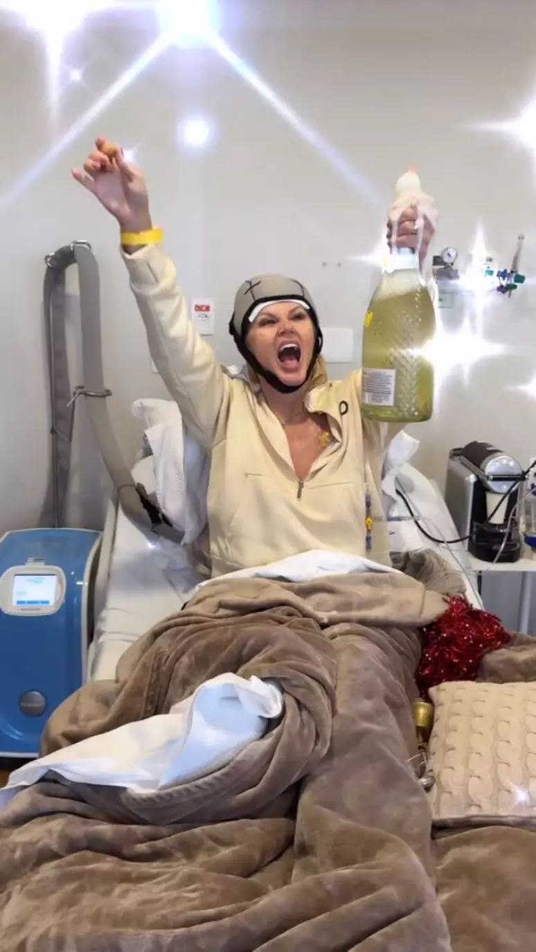 Brasil06/02/2026Val Marchiori celebra última sessão de quimioterapia e estoura champanhe em hospital